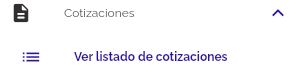 • En el menú lateral, expandir Cotizaciones, seleccionar Ver listado de cotizaciones y hacer clic en el código de la cotización deseada.