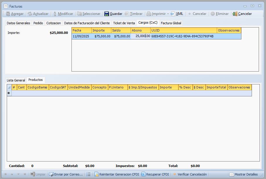 - Una vez creada la factura, seleccionela y haga clic en Timbrar.